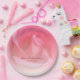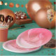 El plato de papel rosa Rosa se extiende sobre la delicada parte central de una rosa rosa rosa. Los pétalos de la flor se desvanecen gradualmente hasta ser blancos en el fondo. El color rosa de la flor sigue predominando y acentúa la elegancia del diseño. Perfecto para la recepción de tu boda. © Morning 6