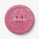 Plato De Papel Rosa rosa claro chispas purpurina Monograma