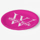 Plato De Papel Rosa y Blanco | Monograma Simple de Apellido Famil
