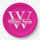 Rosa y Blanco | Platos de Papel con Monograma de Apellido de Familia Simple