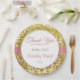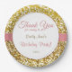 Estas placas rosadas y del oro de cumpleaños de la fiesta tienen un fondo brillante del oro y una cinta rosada en el centro. Dicen que "gracias por la fiesta del cumpleaños (del nombre que viene)!" Hay incluso sitio en la parte inferior para su fecha del fiesta o mensaje especial.
