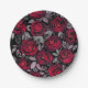 Plato De Papel Rosas acuarelas, rosas rojas sobre negro
