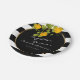 Plato De Papel Rosas amarillas en franjas blancas y negras