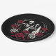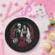Plato De Papel Rosas Blancas y Rojas Negras Esqueleto Pareja Boda