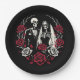Plato De Papel Rosas blancos rojos y negros esqueletos Boda de pa