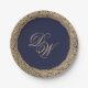 Plato De Papel Rosas de oro azul de la Marina Monograma Script Vi