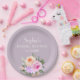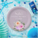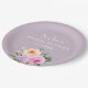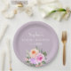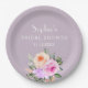 Personalice esta Moda, Placa de papel de ducha de novia floral brillante, una encantadora adición a su celebración. Con un delicado fondo de Lavender, este plato de papel está adornado con una impresionante acuarela de Flores. Los Rosas Rubor Pink, Peach y Lilac bailan con elegancia en medio de la suave vegetación, creando una escena de elegancia natural para sus Rosas Fiesta de ducha de novias, almuerzo o picnic.