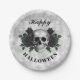 Plato De Papel Rosas negros góticos y cráneo feliz Halloween