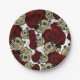Plato De Papel Rosas Rojas y Calaveras Floral Negro Gótico Blanco