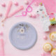 Este plato de papel de ducha con flores de color marrón consta de cinco rosas salvajes de color violeta pastel y melocotón y bordes geométricos por todo el fondo violeta pastel. Personalice el texto en los campos de plantilla o haga clic en personalizar para seleccionar un estilo de tipo, tamaño y color que prefiera.
