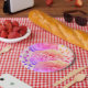 Plato De Papel Rosas y puntos rosados, guardar la fecha,placa de