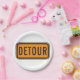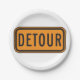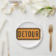 Una señal de desvío de camino en negro sobre un fondo naranja. Este diseño se ve realmente efectivo en estas placas de papel