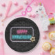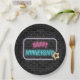 Plato De Papel Rótulo Del Neon Aniversario En La Pared De Ladrill