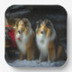 Plato De Papel Rough Collie Snowy Sleigh Navidades Decoración