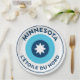 Muestre su orgullo minnesotano con este diseño redondeado basado en la nueva bandera del estado de Minnesota! El diseño presenta una estrella del Norte de ocho puntas y los colores azules simbolizan los 10.000 lagos y ríos de Minnesota.