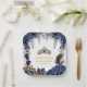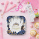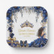 Plato De Papel Royal Blue Golden Tiara Floral Quinceañera