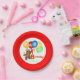 Un juguetón oso de peluche real con una corona principesca de joyas azules, amarillas, rojas y verdes con una colorida colección de globos son platos alegres y alegres de fiesta de cumpleaños que le darán un toque festivo a su mesa fiesta. Personalizar los platos con el nombre del niño de cumpleaños lo hace especial. El nombre y el año se pueden personalizar utilizando la plantilla proporcionada.
