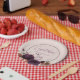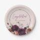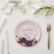 Estos hermosos platos de papel son perfectos para su próximo evento. Este diseño presenta ricas flores y tipografía personalizada.