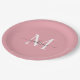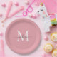 Plato De Papel Rubor de chica Rosa Gris Monograma Nombre de Letra