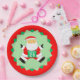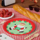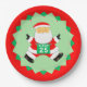 Creative running themed Christmas holiday party plates featuring funny Santa runner racing.