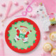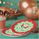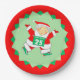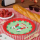 Creative running themed Christmas holiday party plates featuring funny Mrs. Claus runner racing.