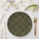 Rustic botanical face line pattern paper plate featuring abstract facial outlines blended with delicate leaves and floral accents on a warm brown background. Vintage-inspired and minimalist, this elegant design has a natural earthy aesthetic ideal for rustic decor lovers, boho style fans, botanical enthusiasts, and modern farmhouse admirers.