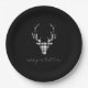 Elevate your holiday gatherings with rustic elegant black and white plaid check deer Christmas paper plates. add your text such as a joyful message, your family's name. the personalized Christmas paper plates bring even more cheer to your holiday celebrations!