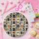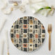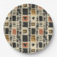 Earthy geometric pattern paper plate inspired by tribal mudcloth textiles, featuring hand-painted rectangles, diamonds, and triangles in charcoal black and terracotta on a textured beige background. A warm boho design ideal for rustic décor lovers, artisan style fans, and anyone drawn to earthy geometric aesthetics.
