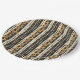 Warm geometric stripe pattern paper plate featuring tribal-inspired diamonds, zigzags, and textured vertical bands in earthy brown, terracotta, tan, beige, and charcoal tones. A cozy boho design ideal for southwestern décor lovers, rustic style fans, and anyone drawn to earthy, handcrafted aesthetics.
