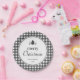 Celebrate Christmas in rustic style this year and use this black and white gingham paper plate to elevate your party table. This paper plate features a classic black and white farmhouse gingham pattern as background on top of which sits your season's greetings in rustic black font on a white circular shape. At the top of your greetings are three charming hand-drawn vintage Christmas trees, as an added touch of style, and at the bottom you'll find your family name and the current year in rustic vintage serif font. If rustic and vintage Christmas is your thing, this paper plate and the collection it sits in may be just what you need. This paper plate is ready for you to customize. To make it yours, click the Personalize link and follow the instructions.