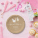 Con una linda cigüeña que lleva una estrella de oro muy especial, sobre un fondo rústico de kraft neutro de género, estos platos de papel son perfectos para una ducha especial para bebés, rociadores o duchas para parejas. Personalizar los detalles del evento en la tipografía de moda. Diseñado por Thisisnotme©