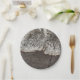 Platos rústicos de papel de país con ladrillo de abedul y madera de árbol antigua