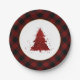 Plato De Papel Rústico Árbol de Navidad Rojo Jugado de búfalo mod