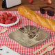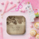 Rústico diseño boda occidental. Caballo marrón con textura vintage de campo sobre placas de papel cuadrado. Derechos de imagen de Marg Seregelyi Photography.