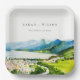 Plato De Papel Rústico Boda paisajístico rural del lago rural