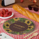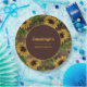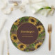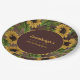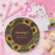 Placas de papel personalizado fiesta para el calor de la casa con girasoles rústicos de campo amarillo brillante sobre un fondo de madera marrón oscura. Personalizado con tu nombre. Contáctenos para obtener ayuda sobre la personalización o la correspondencia de productos.