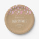 Plato De Papel Rústico kraft bebé gotas de lluvia rosadas rociar