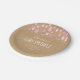 Diseñado para coordinar con nuestra colección de gotas de lluvia rojas negras rusticas. Moda gotas de lluvia rosadas caen hacia tus detalles personalizados sobre un fondo rústico kraft en este lindo plato de papel rociado para bebé.