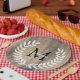 Plato De Papel Rústico Laureados de un país blanco en madera clar