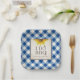 Este plato rústico de papel de gingham para girasol forma parte de la colección VGInvites de cuadros azules y girasoles. Se integra perfectamente con nuestra suite de invitados. Estos platos presentan un girasol amarillo en negrita en un estilo de pintura sobre un fondo vintage con un diseño de patrón de damero. Personalizar con los nombres de la novia y del novio y la fecha del boda. Perfecto para hacer fiestas de compromiso con barbacoa, cenas de ensayo, bodas o lo que quieras. Para ver más visitemos www.zazzle.com/vginvites