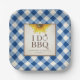 Plato De Papel Rústico Sunflower Blue Gingham I Do BBQ
