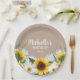 Plato De Papel Rústico Sunflowers Daisies Nombre de la fiesta de