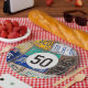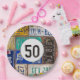 Colección de matrículas de oxidado antiguo para la fiesta de cumpleaños número 50. La edad se puede cambiar.