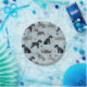 Perros Schnauzer en negro, sal, pimienta y abrigos negros y plateados sentados, de pie y girando con huesos de perro dispersos y huellas de pata en un fondo azul claro.