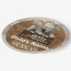This charming design showcases an adorable elephant balancing as if perched on a ball behind a wooden sign, holding it with its front legs. The sign reads “Adventure Awaits” in typography crafted to look like it is carved into real wood, giving the plate a warm, handcrafted rustic feel.