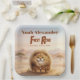 Safari theme first birthday paper plates featuring an original character from the Hystrix Little Thoughts® collection. This design features Zuberi: a charming fluffy leopard character, whose name means “strong” and “powerful,” adding a meaningful and symbolic touch to this “First Roar” birthday. Set in a soft watercolor African safari landscape with warm earth tones, gentle hills, and acacia trees, this invitation creates a sweet and adventurous atmosphere, perfect for a wild one safari party or baby boy first birthday.
