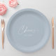 Celebra el amor con elegancia usando este polvoriento plato boda azul con la romántica frase "Saludos al amor" en una elegante tipografía. Perfecto para duchas de novias, bodas, cenas de ensayo y fiestas de compromiso, este elegante plato de papel le da un toque suave y refinado a su día especial. Póngalo en pareja con servilletas y tazas de la Colección Azul Polvoriento para un aspecto cohesivo.