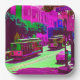 Colorido gráfico de una escena callejera en San Francisco con teleféricos...