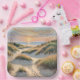 Huellas acuáticas en dunas de arena de playa con pampas salida del sol sobre el océano