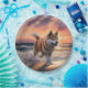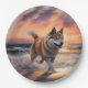 Plato De Papel Sandy Paws Akita Dog en Beach Sunset